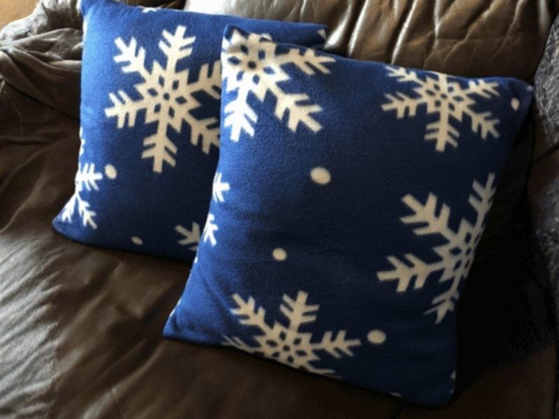 These Wintry DIY Pillow Covers craft is inexpensive and PERFECT for beginner sewers. Truth be told, pillow covers are my favorite thing to make. All my couch pillows (6!) have custom covers on them. They’re cheap and super easy to change out with my living room colors.