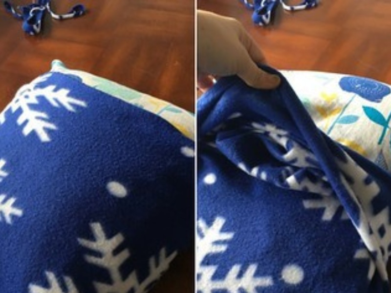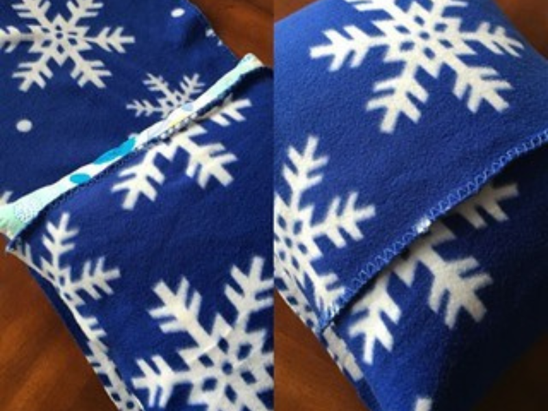 Now you’re almost done already! This is what it looks like with both sides sewn. Another great thing I love about these fleece blankets, is the design is the same on both sides, so you don’t have to worry about pieces the “right” sides together.