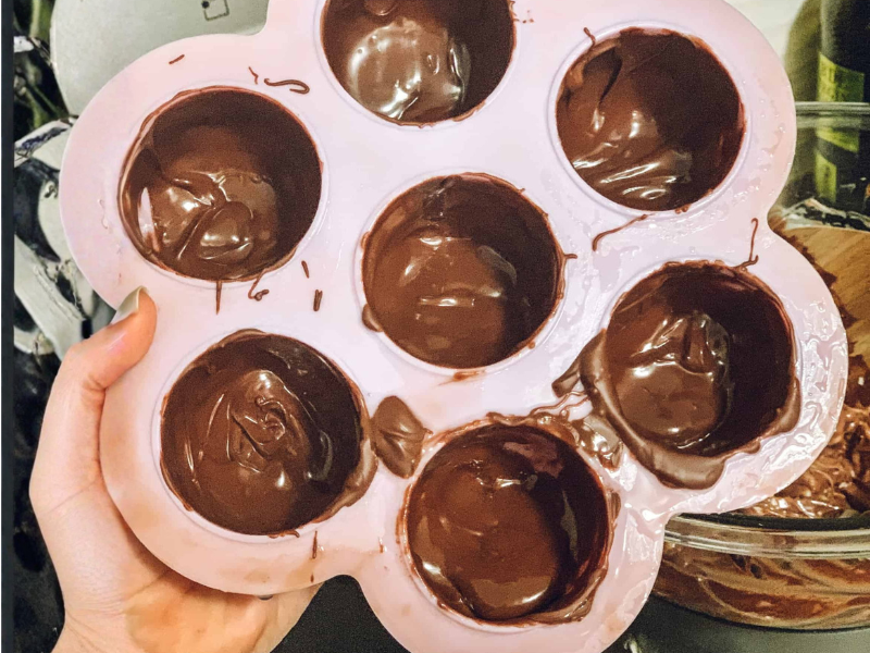 - Once the chocolate is melted, coat the molds with the melted chocolate