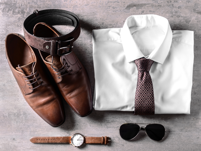 - Dress slacks with a button-down shirt and tie, with a sport coat or suit jacket with dress shoes