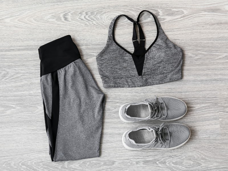 - Leggings or joggers, athletic shorts, moisture-wicking tops, sneakers, and maybe a ball cap or hoodie.