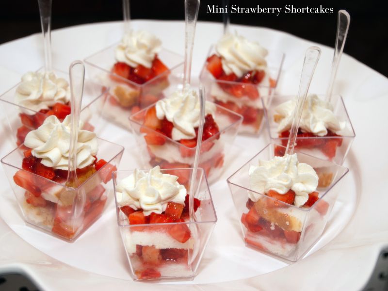 - In small plastic bowls, begin layering shortcakes by adding a few cubes of pound cake to each bowl, followed by strawberries with syrup, then whipped cream.