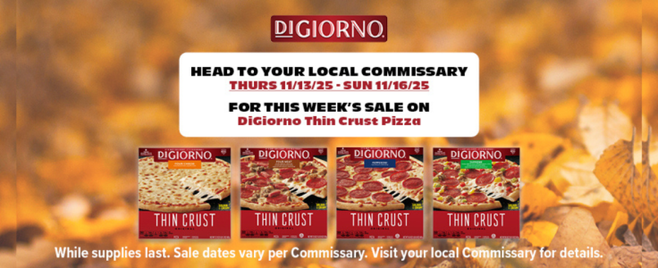 Crispy, Cheesy, and On Sale – DiGiorno Thin Crust at Your Commissary!